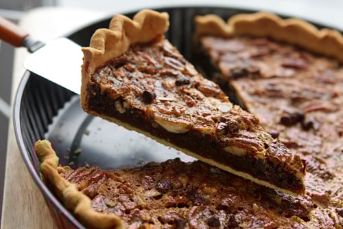 Circling back to pecan pie, this is another favorite recipe on mine, loaded with big chunks of bittersweet chocolate, who hold their own in a crowd of pecans.